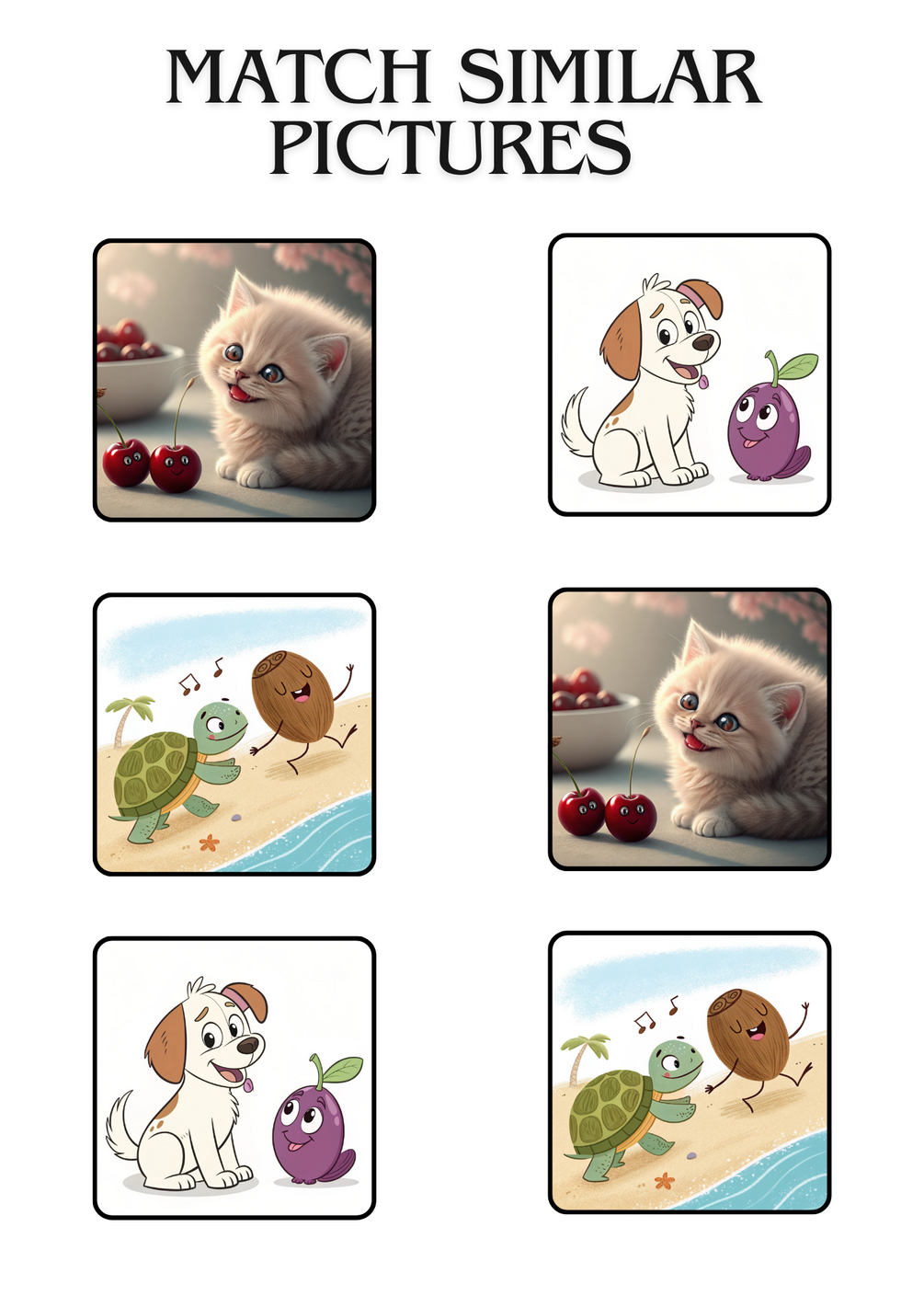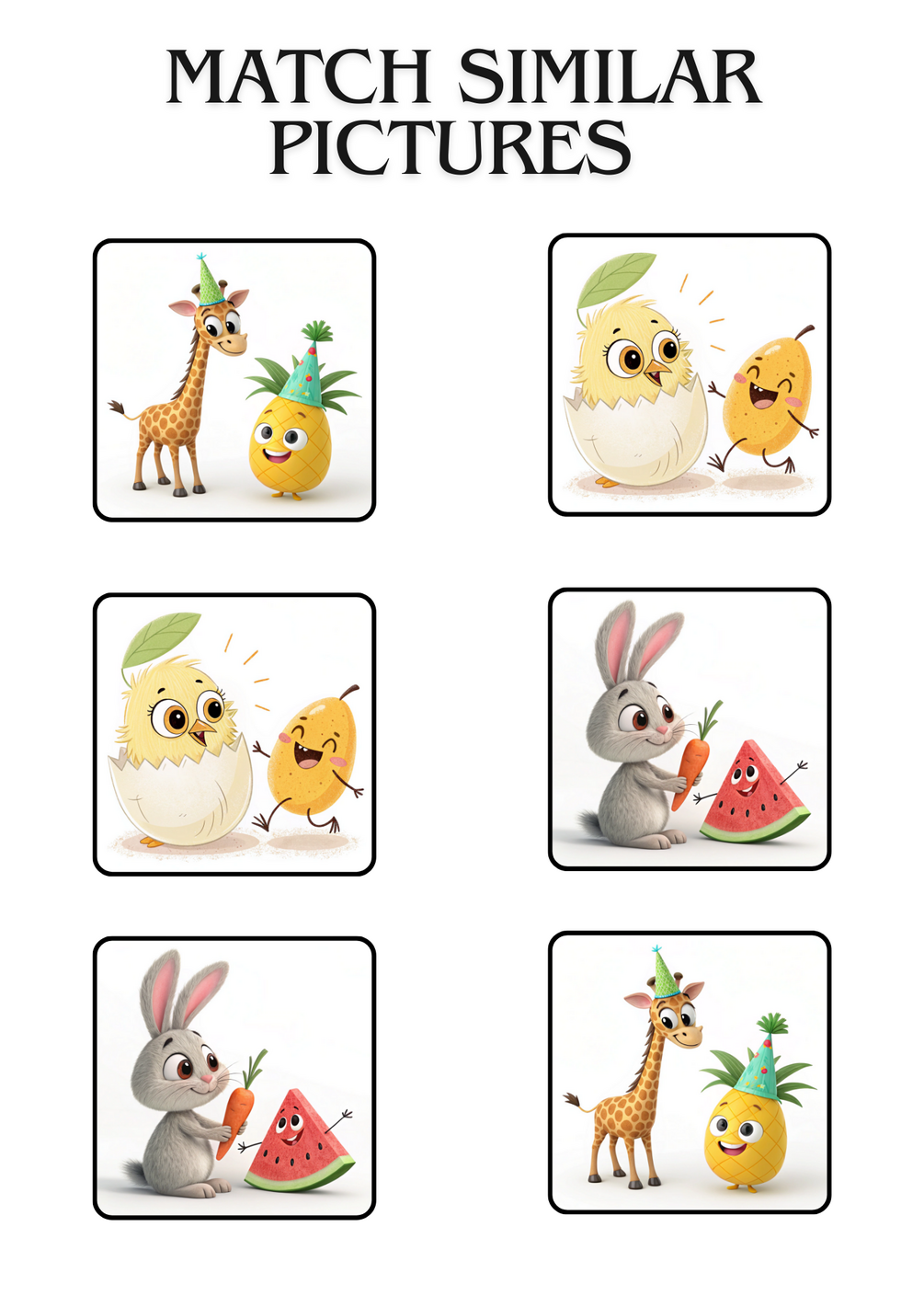 - 15 adorable 3D-style cartoon animals, each with a hilarious fruit friend